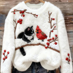 Pulover Femei de Crăciun cu Motive de Pisici din Fleece Artificial