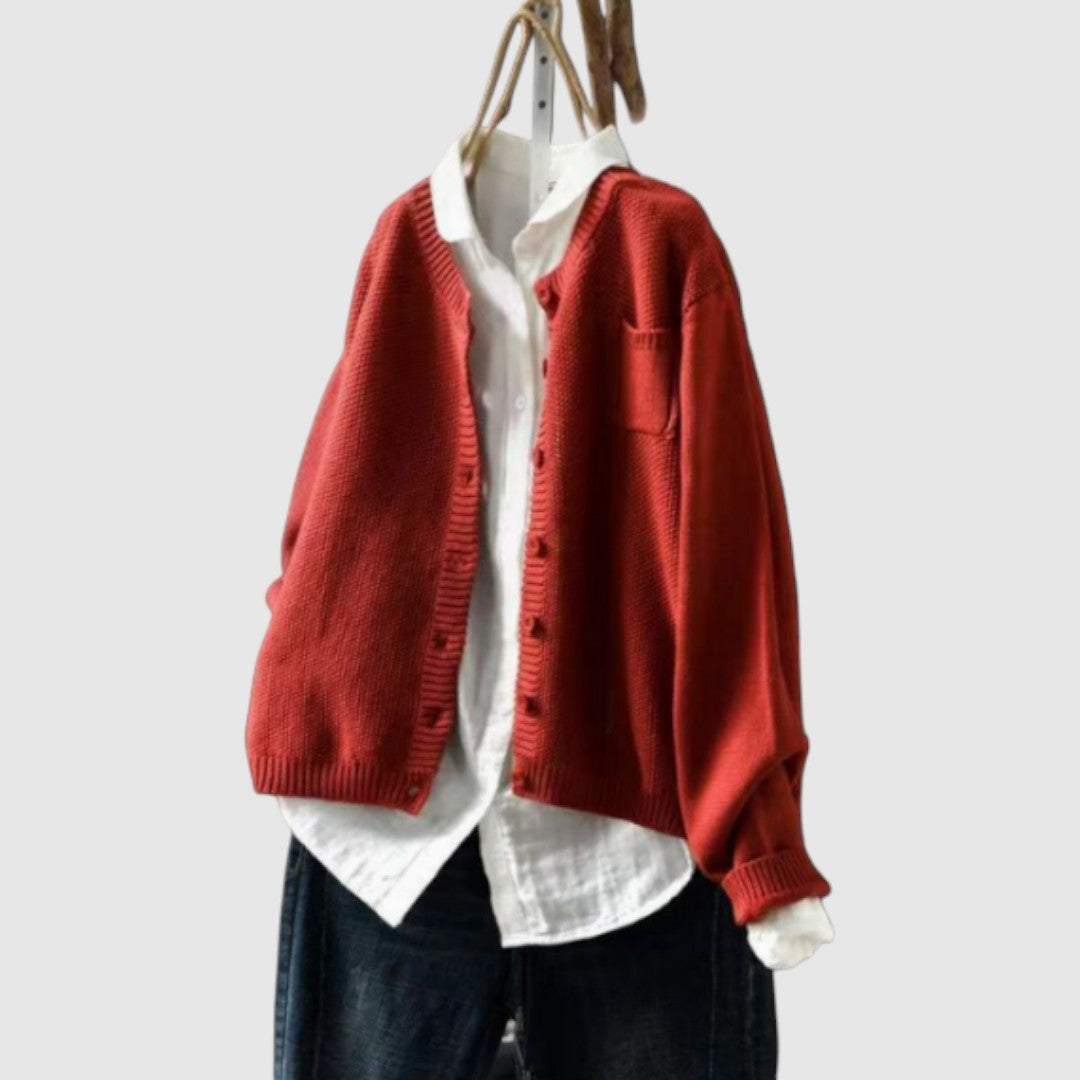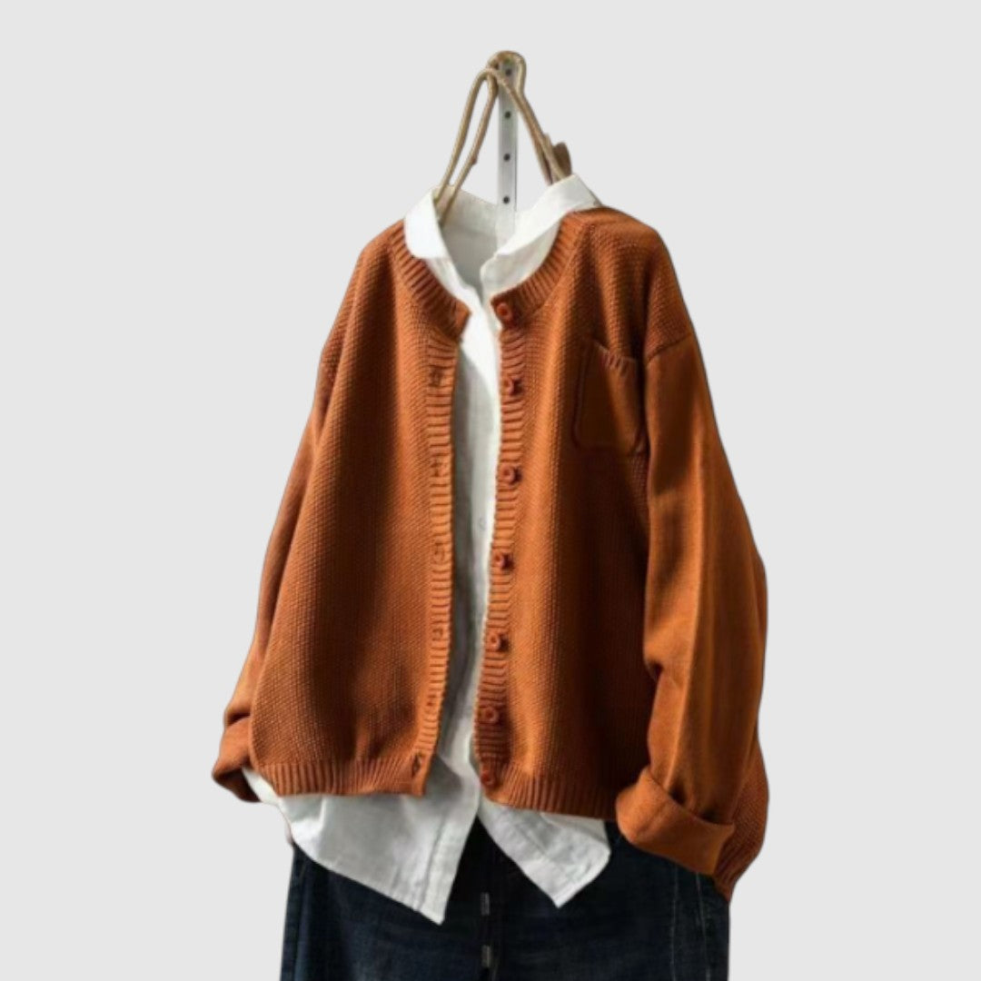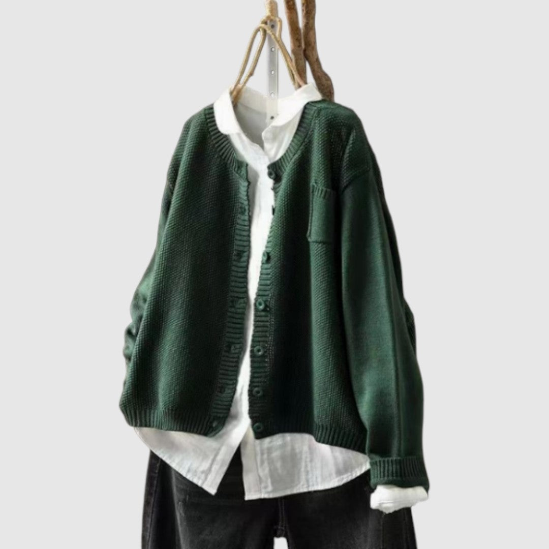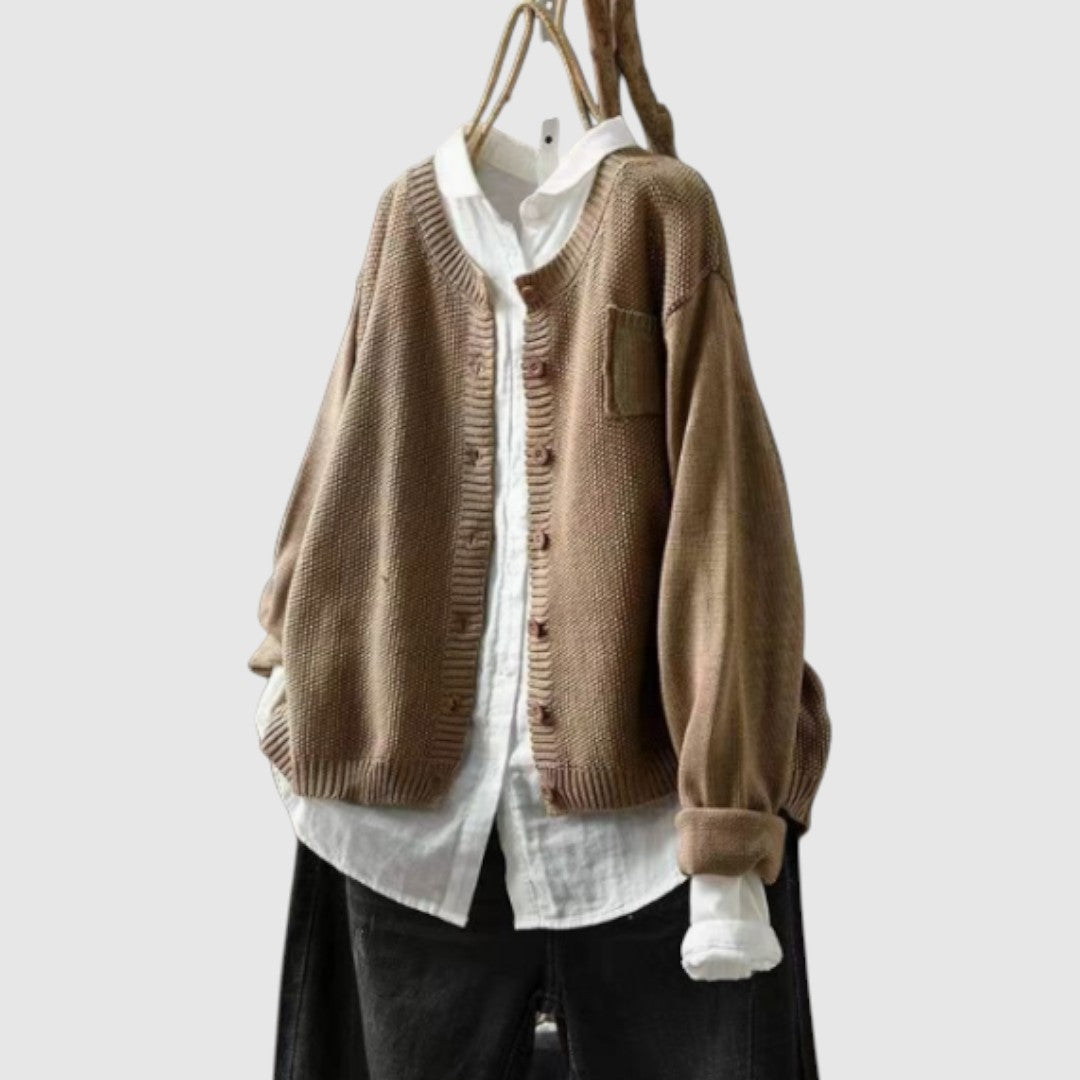 O vestă tricotată cu o textură moale, care oferă confort și eleganță. Croiala sa liberă o face ideală pentru ocazii zilnice, dar și speciale, în timp ce designul său atemporal se potrivește cu orice stil. O piesă care combină practicitatea cu rafinamentul.
