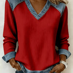 Top patchwork cu decolteu în V, inspirat de Crăciun pentru femei