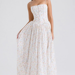 Rochie elegantă și colorată, care subliniază feminitatea cu o notă romantică. Corsetul ajustat cu cusături verticale accentuează silueta, în timp ce fusta largă asigură confort și mișcare. Ideală pentru ocazii de primăvară și vară, de la plimbări zilnice la invitații elegante.