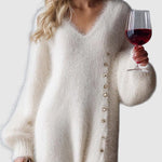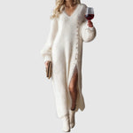 Rochie maxi pufoasă și călduroasă, care te îmbrățișează în confort și îți oferă un strălucire rafinată de iarnă — ideală pentru întâlniri festive, seri cozy și momente elegante de iarnă.