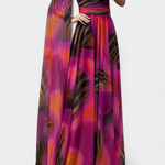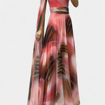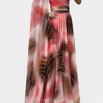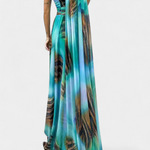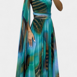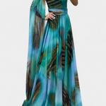 Rochie lungă Nives cu un umăr și detaliu colorat