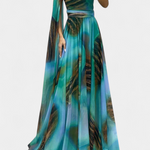Romantică și sofisticată, rochia Nives aduce un spirit sculptural și feminin datorită decupajului cu un umăr și a mânecii drapate. Aplicația florală delicată ridică designul, în timp ce silueta maxi se mișcă fluid cu grație, creând o prezență de neuitat la orice eveniment. Fabricată dintr-un material moale și elegant, echilibrează confortul cu o strălucire rafinată.