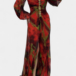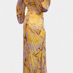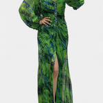 Rochie Maxi Leona cu Plisare, Mâneci Lungi și Model Vibrant