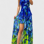 Prezență sculpturală cu o notă romantică. Rochia Zrinika combină straturi moi de volane cu o deschidere laterală și un gradient delicat de culoare, creând un design care curge elegant și se remarcă fără efort. Structura sa fără mâneci și croiala până la glezne o fac o alegere ideală pentru evenimentele de vară, pline de stil.