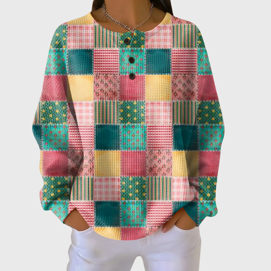 Rămâneți plăcut călduroși, chiar și atunci când temperatura scade la 5°C, cu puloverul nostru de lux pentru femei – realizat dintr-un material gros, dublu, tricotat în formă de vafe, care oferă o senzație extrem de moale și confortabilă. Interiorul este suplimentar călduros și se simte ca un fleece pe piele, astfel încât să vă puteți bucura de un confort suprem în zilele răcoroase.