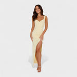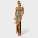 Rochia Constanța redefinește complexitatea prin decolteul său drapat și spatele descoperite cu fundiță. Cu un siluet îngust care alungește figura și o fantă laterală pentru libertatea de mișcare, este ideală pentru evenimente speciale la care să se străduiască.